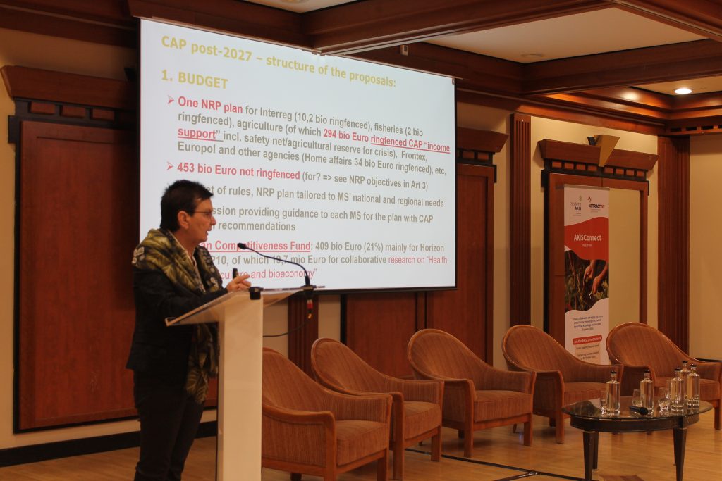 Inge Van Oost presented the progress achieved in the implementation of AKIS across Member States in recent years, highlighting developments in multi-actor projects, knowledge exchange, and the evolving role of advisory services. The presentation also introduced key elements of the proposed CAP 2028 regulation, which aims to simplify legislation and strengthen the organisation of AKIS, while giving Member States greater responsibility for funding through national and regional partnership plans. The proposal places strong emphasis on fostering innovation, improving knowledge flows, and strengthening advisory support for farmers.