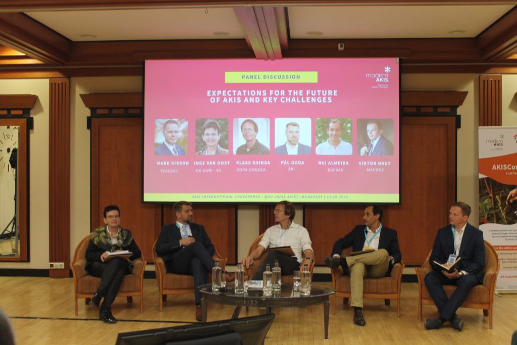 Representatives from several key AKIS organisations — including Inge Van Oost, Klaas Osinga (COPA-COGECA), Pál Goda (AKI), Rui Almeida (EUFRAS), and Viktor Nagy (MAGOSZ) — took part in a panel discussion titled “Expectations for the Future of AKIS and Key Challenges.” The discussion highlighted the central role of collaboration, trust-building, and clear communication in addressing the evolving challenges of European agriculture. Panellists underscored the need for stronger farmer involvement, well-trained and skilled advisors, and a supportive environment for innovation. They also stressed the importance of tailored training opportunities to help ensure food security and advance the green transition, even in the face of limited funding and increasing demands on the agricultural sector.