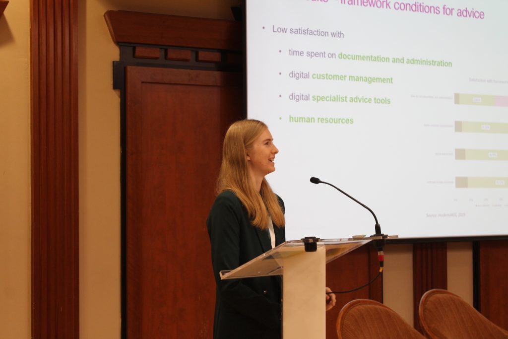 The session continued with Julia Eberharter from the Austrian Chamber of Agriculture, who presented findings from a study on the role of agricultural advisors as intermediaries between research and practice. The survey-based research provided insights into advisors’ qualifications, experience, and satisfaction with current conditions, as well as their needs for networking and policy support. Results highlighted the importance of methodological and didactic skills, ongoing training, and stronger integration of advisors within national AKIS frameworks.